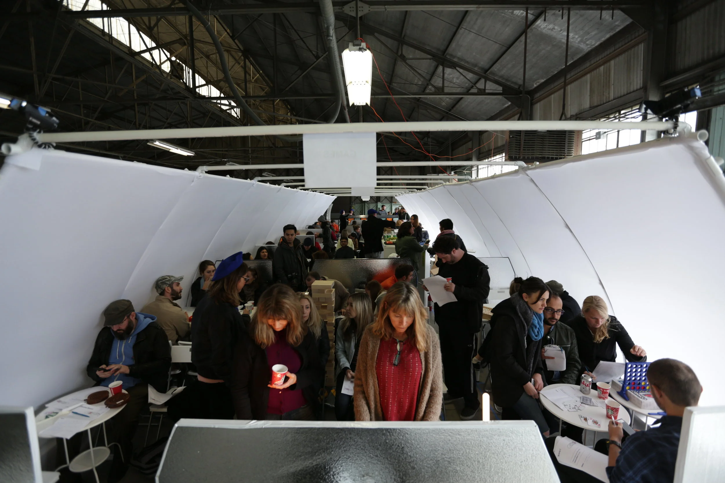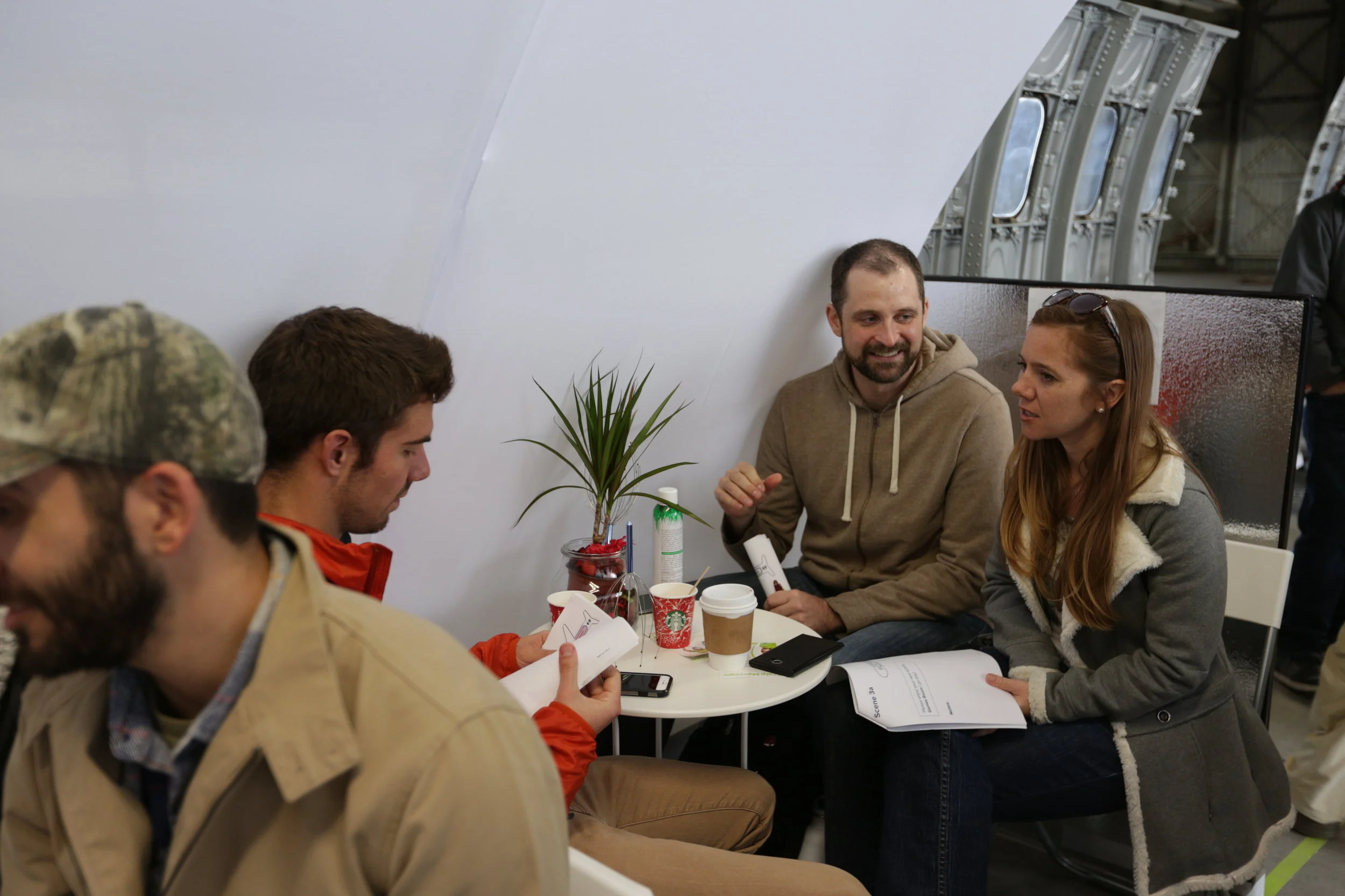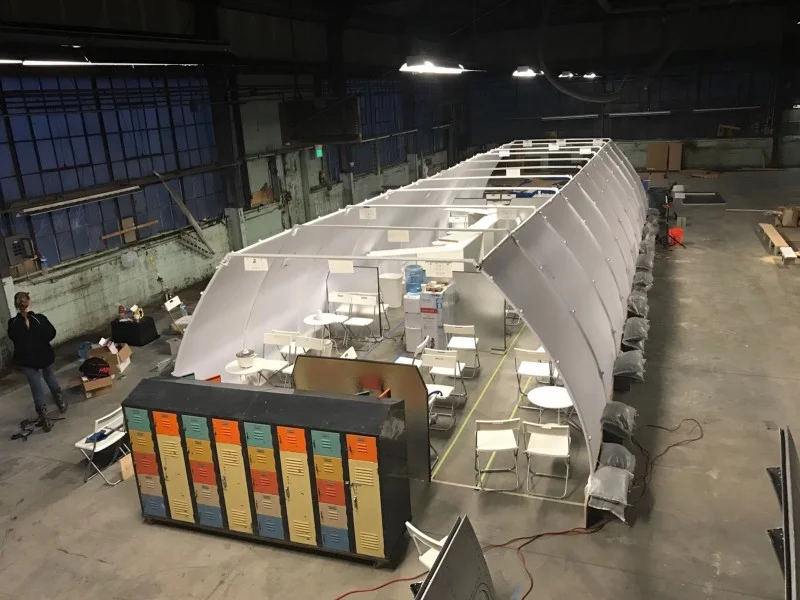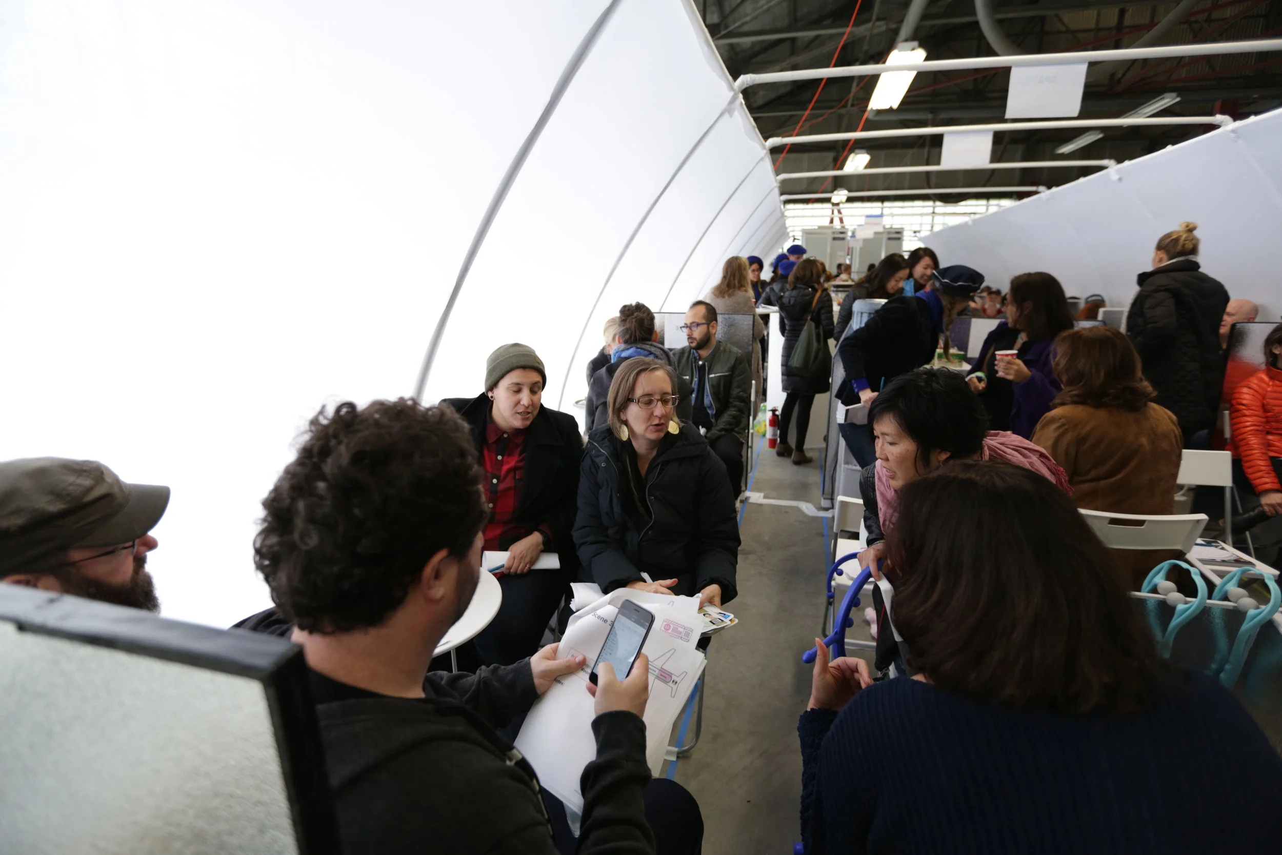 An old aircraft hangar at Crissy Field by the Golden Gate Bridge served as the location for our live user testing. The fuselage structure was completed in 4 days and housed the 3 hour live test with 70 “passengers” and 4 flight attendants. Findings, insights and recommendations were then shared with the Airbus team.
